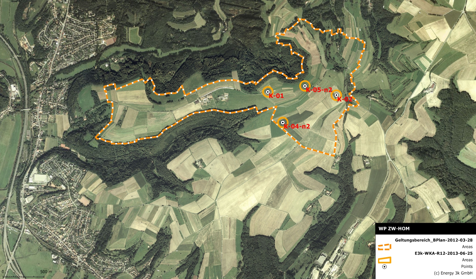 Die Anlagenstandorte liegen alle innerhalb der bewirtschafteten Ackerflächen und außerhalb der Waldflächen.